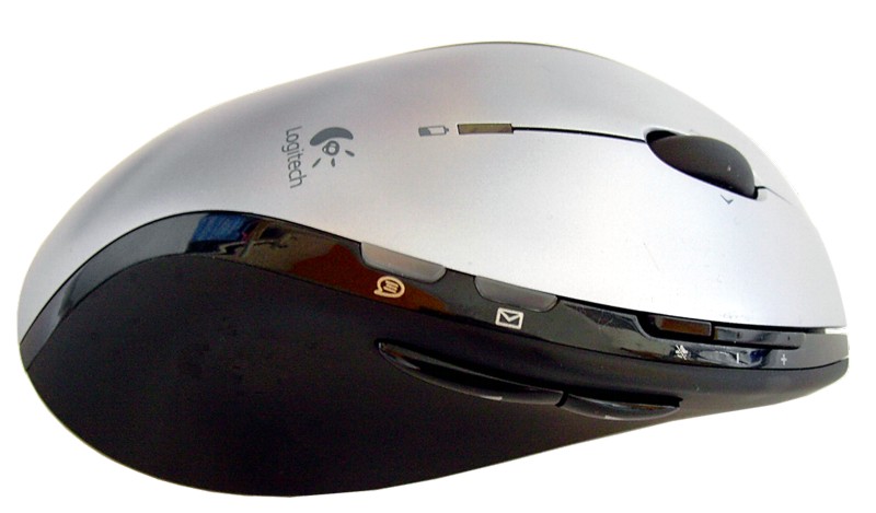 Ohnehin keinen Grund zur Klage bieten die insgesamt 10 Tasten, die mit der von Logitech gewohnten (und inzwischen wohl auch vorausgesetzten) Präzision arbeiten. Rechte und linke Taste arbeiten sauber und definiert, das Vier-Wege-Rad zum Scrollen in Dokumenten oder auf Webseiten kann wie schon bei der G5 und G7 voll überzeugen. Allerdings sind die Raststufen vergleichsweise sanft gehalten, aber dennoch deutlich zu spüren. Eine Umstellung gegenüber bisherigen Benutzungsgewohnheiten dürfte jedoch die Masse an zusätzlichen Tasten sein, die eine breite Palette an Funktionen zugänglich macht. Wir finden neben dem Vier-Wege-Rad auf der rechten Seite zwei Navigationstasten für den Browser und auf der Oberseite rechts drei Tasten zur Lautstärkeregelung und Stummschaltung sowie zwei etwas abgesetzte und beleuchtete Tasten für ein Email- und ein Messaging-Programm. Eine LED auf der Oberseite gibt Auskunft über den Ladezustand der Batterien. Alle Tasten lassen sich weitgehend frei belegen. Dazu jedoch weiter unten mehr.