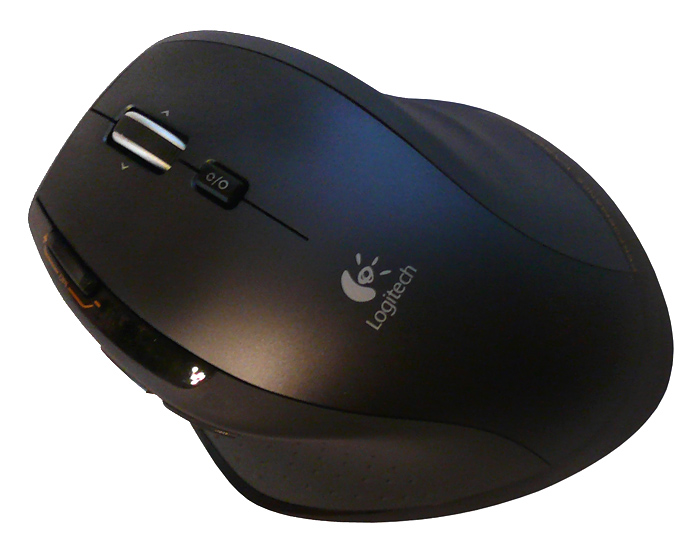 Die in unauffälligen Farben gehaltene MX 1100 hat eine ergonomische Form, ist besonders groß und breit gebaut und soll somit eine komfortable Auflage für die gesamte Hand bieten. Dies konnten wir während unserer Verwendung der Maus bestätigen. Sie liegt trotz ihrer Größe und ihres relativ hohen Gewichts gut in der Hand. Große Hände werden allerdings auf die angepriesene Auflage der ganzen Hand verzichten müssen, hierfür ist die Maus zu klein. Nichtsdestoweniger liegt sie hervorragend in der Hand, vorausgesetzt man ist Rechtshänder. Die Mausform hat einen weiteren Vorteil. So befindet sich auf der rechten Seite der Maus eine deutlich erkennbare Ablage für die zwei äußeren Finger. An der linken oberen Seite sind neben einer LED-Anzeige, die den Batteriezustand anzeigt auch zwei Tasten für die Umschaltung zwischen den zwei Auflösungsmodi der Maus. An der Oberseite befindet sich neben dem bereits genannten MicroGear-Scrollrad und den üblichen zwei Maustasten auch die Umschalttaste zwischen den Modi des Scrollrads. Einerseits lässt sich stufenweises Drehen einstellen, der andere, sogenannte Free-Spin-Modus, ermöglichst schnelles, stufenloses Scrollen, da sich das Mausrad bis zu zehn Sekunden weiterdreht, nachdem es einmal angestoßen wurde. An der linken Seite liegen je eine Vor- und Zurücktaste und eine Taste, die standardmäßig die Programmumschaltung öffnet. Diese Taste ist in die Daumenauflage eingearbeitet und von außen nicht sichtbar. Alle Tasten sind hervorragend positioniert und leicht erreichbar, allerdings lässt sich erstmals eine kleine Verabeitungsschwäche an der Maus feststellen: Die Rechte Maustaste etwa einen halben Millimeter zu hoch eingesetzt, wodurch eine leichte Kante entsteht. Ansonsten sind uns aber keine Verarbeitungsschwächen aufgefallen und Logitech liefert die gewohnte und erwartete Qualität ab.