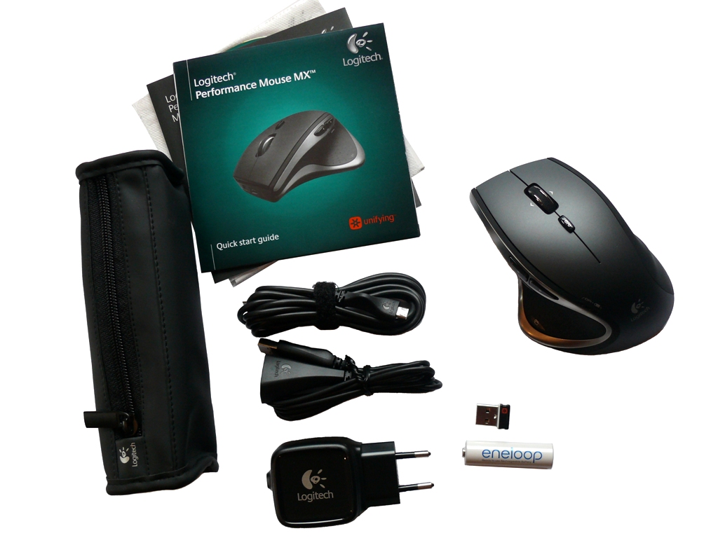 Die Maus kommt in einer Logitech-üblichen Verpackung daher: Hinter einer Abdeckung aus Karton befindet sich die in Kunststoff verpackte Maus. Wie wir es von Logitech gewohnt sind, finden wir hier keine scharfen Kanten, die Verpackung ist durchwegs hochwertig. Der Lieferumfang stellt einen neuen Rekord für Logitech dar. Nicht nur, dass alle nötigen Dinge wie Maus, Akku und Empfänger beigelegt sind, zudem befindet sich auch ein USB-Ladekabel, ein Netzteil für das Laden über eine Netzsteckdose, ein USB-Verlängerungskabel für den Empfänger und eine kleine Tasche im Lieferumfang, die beispielsweise für den Transport des Zubehörs verwendet werden kann. Selbst die enorm hohe unverbindliche Preisempfehlung von 99,99 Euro hat nicht auf einen derart großen Lieferumfang hoffen lassen. Durch diesen Preis zählt die Maus sicherlich zur High-End-Klasse der Eingabegeräte, ist aber bereits zu einem Straßenpreis von etwa 75 Euro erhältlich (Quelle: Geizhals.at, Stand: 04/2010).