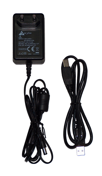 Als Verbindung zum Computer dient bei dieser Serie ausschließlich ein USB2.0-Anschluss an der Rückseite, an der sich auch ein Ein-/Ausschalter und der Stromanschluss für das externe Netzteil befindet. Letzteres kommt mit einer Maximallänge von immerhin 1,8 m daher, während auch hier ein nur 1,0 m kurzes USB2.0-Kabel beigelegt wurde.