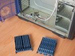 Neben dem Design und der sehr guten Verarbeitung hat das Casetek CS-C1018 BM aber auch noch viele andere interessante Vorzüge und Funktionen zu bieten. Dazu gehören wie schon erwähnt unter anderem auch das "Top-"Panel, welches Anschlussmöglichkeiten für 2x USB, 2x Audiound und 1x FireWire ermöglicht. Besonderheit des Casetek CS-C1018 BM ist die Möglichkeit fast die gesamte Hardware ohne Werkzeug zu installieren und befestigen. Nur das Mainboard und das Netzteil müsen noch festgeschraubt werden. Diese wird man aber später sicherlich aber auch nicht so oft wieder aus- und einbauen. Die Slotkarten (also Grafikkarte, Soundkarte etc.) werden mittels einem speziellen Systems befestigt. Auch die Laufwerke werden schraublos montiert. Hierfür sind extra spezielle Laufwerksschienen beim Gehäuse dabei, welche einfach an die Laufwerke "drangeklickt" werden. Danach können diese einfach in die Laufwerksschächte geschoben werden. Natürlich besitzt das Gehäuse auch Rändelschrauben zum leichten Öffnen ohne Werkzeug...