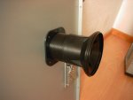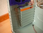 Wie man nun langsam bemerkt, setzt auch Yeong Yang beim Cetus YY-5601 vollkommen auf folgendes Konzept: So wenig Schrauben wie möglich. Daran hält man sich auch bei den PCI- und AGP-Slots an der Rückseite des Gehäuses: Hier können die Karten mittels einer Art Klammer komplett ohne Schrauben befestigt werden. Die abnehmbare Gehäusewand ist mit zweier sogenannten Thumbscrews befestigt und wird nur mit Hilfe eines Schlosses gesichert (abschließbar, 2 Schlüssel liegen bei).