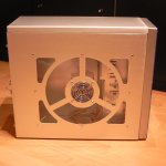 Ein Markenzeichen für Gehäuse und auch Merkmal ist eine Art beleuchtetes "Bullauge" in der Front, welches ein LCD zum Ablesen von Temperatur, Uhrzeit, HDD-Aktivität und Spannungsstatus beherbergt. Ein weiteres besonderes Merkmal und auch Markenzeichen des Gehäuses ist das bereits eingebaute und sehr ausgefallene "Window" in der Seitentür des Gehäuses, welches ausserdem noch einen durchsichtigen Lüfter inklusive Lüftergitter montiert hat.