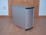 Bevor wir uns nun mit den einzelnen, technischen Finessen beschäftigen, betrachten wir erst einmal die äußeren Werte. Man erkennt auf den ersten Blick, dass es sich um ein Lian Li Aluminium-Gehäuse handelt. Grund dafür ist die Form und das gebürstete Aluminium des Gehäuses. Der Midi-Tower besitzt wie schon erwähnt eine massive Aluminium-Fronttür. Sie verleiht dem PC-6070 einen edlen Touch. Doch Design ist wie bekannterweise Geschmackssache. Ansonsten gibt es im Design keine weiteren Besonderheiten. Einzig das Fehlen der eingelassenen Griffkerben (siehe Lian Li PC-60) in den Seitenwänden fällt nach genauerem Hinsehen noch auf. Diese wurden zugunsten der dann deutlich einfacheren Montage der Dämmmatten bei der Herstellung des Gehäuses wohl weggelassen...