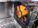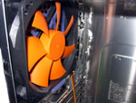 Das Thermaltake Tsunami VA3000BNA setzt in Sachen Design nicht auf eine besonders auffallende Optik sondern mehr auf "understatement". Die schwarze Lackierung mit Spiegel-Effekt zieht zusammen mit der matten Aluminium Front, den Silberapplikationen und den dezenten blauen LEDs dennoch viele Blicke auf sich. Dennoch gilt auch hier: "Wer schön sein will muss leiden", denn auf der Oberfläche sieht man sofort jeden Fingerabdruck, Staubkrümel oder Kratzer - Vorsicht ist also geboten! Nichts desto Trotz kann auch hier das mitgelieferte Mikrofaser-Tuch seine Künste beweisen. Ganz im farblichen Kontrast stehen allerdings die Lüfter im Inneren - knalliges Thermaltake-Orange steht hier an der Tagesordnung. Die Optik wird durch die Lüfter aber nicht gestört, denn schließlich sieht man jene bei geschlossenem Gehäuse nicht.
