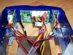 Nun hier zum wohl interessantesten Teil des Artikels: Zu den Extras zählen unter anderem die beiden Lüftersteuerung - eine in der Fronttür mit lediglich zwei Potis und der Thermaltake Hardcone. Dann natürlich noch die Leuchtschrift an der Front, die wahlweise immer leuchtet oder in drei Stufen blinkt, wobei dies dann auf Dauer auch nervig sein kann. Die fünf mitgelieferten Gehäuselüfter, alle aus dem Hause Thermaltake, sind alle mit weniger als 21 dB angegeben. Dies erweist sich auch als korrekt, die Lüfter sind relativ leise, wobei dies nicht leicht zu bewerten ist, denn jeder hat eine eigene Auffassung von Silent oder Normallautstärke. Zwei der 92 mm Lüfter sind aus klarem Kunststoff gefertigt und mit blauen LEDs versehen. Die in der Fronttür verbauten Potis sind mit einem zweiten Kabel mit den steuerbaren Lüftern verbunden. Alle mitgelieferten Lüfter haben einen 4-Pin Molex-Netzteil Stecker und ein extra Lüftersignalkabel, somit müssen sie nicht den Strom vom Mainboard beziehen, können aber dennoch ein Signal senden, welches die momentane Umdrehungszahl beinhaltet. In das X-förmige Window ist der Firmenname Thermaltake eingraviert, der bei richtiger Beleuchtung blau erscheint. Die PCI- und AGP-Steckplatzbefestigungen sind wie beim Casetek 1018 mit kleinen Klammern versehen, für den Schraubenlosen Tausch von Karten. Leider ist dieses System bei etwas breiteren Platinen nicht mehr einsatzfähig und muss komplett entfernt werden.