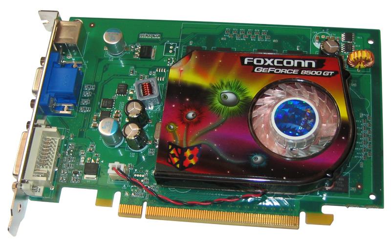 Mit Grafikkarten auf Basis der GeForce 8500 GT will Hersteller Foxconn auch das Einstiegssegment im Bereich Grafikkarten bedienen und liefert eine entsprechende Karte für deutlich unter 100 Euro aus. Der Lieferumfang begrenzt sich auf das nötigste und beinhaltet eine Treiber-CD, ein TV-Out Kabel für RGB-Komponentenanschluss und S-Video, ein englisches Handbuch und einen DVI/VGA-Adapter für die Wiedergabe auf analog angesteuerte Monitore. Ein Lieferumfang, wie man ihn von einer Karte in diesem preislichen Bereich erwartet. Ob es im Bereich der Hardware Besonderheiten zu entdecken gab, lesen Sie im folgenden Abschnitt ausführlich.
