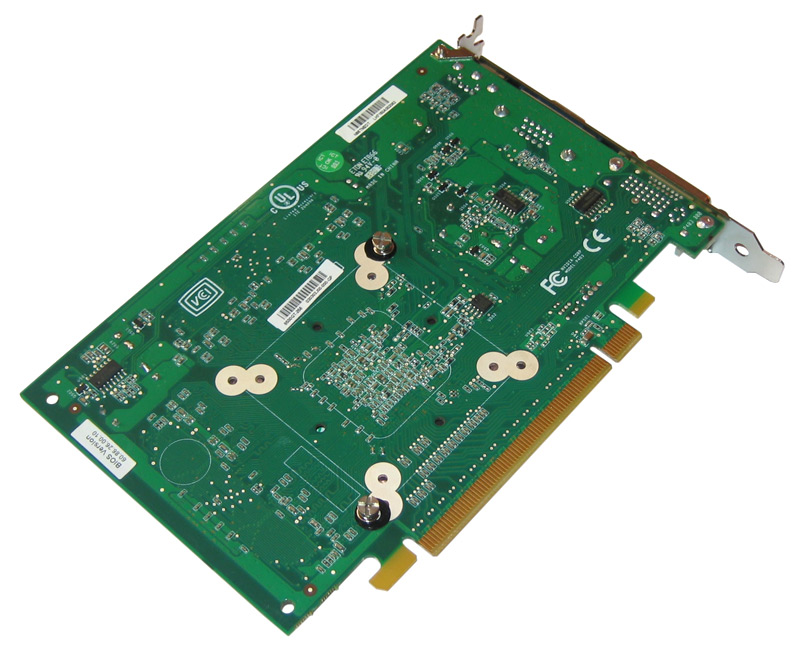 Die Foxconn 8500GT-256 setzt auf den bekannten G86-Grafikchip und verfügt über 16 integrierte Shader-Prozessoren zur Berechnung der anfallenden Daten. Im direkten Vergleich mit den 8600er Modellen spart man hier nicht nur an der Hardware ein, sondern dreht auch gleichzeitig die Frequenzen ein wenig zurück. Mit 450 MHz Chip- und 900 MHz Shader-Takt hält sich Foxconn an die Referenzwerte von Chipentwickler Nvidia. Bei der Wahl des Grafikspeichers hat man sich für DDR2 in BGA-Form entschieden und auf Hersteller Hynix gesetzt. Die verbauten acht Chips, über 128 Bit an den Core der Karte angebunden, mit der Seriennummer HY5PS561621AFP-25, geben uns dank des "GRAPHICS MEMORY PART NUMBERING" auf der Hynix-Website Aufschluss über die Specs: 1,8 Volt, 256 Mbit, 16Mx16, 2,5 ns. Mit genannter Zugriffszeit sind also theoretisch bis zu 400 MHz Speicherfrequenz möglich. Exakt diesen Wert schreibt Nvidia als Minimum vor und wird auch von Foxconn so übernommen - ein Overclocking der Module scheint damit wenig aussichtsreich. Auf Seiten des Slot-Brackets finden wir einen Dual-Link-DVI-Port für den Anschluss digitaler und analoger Monitore, einen herkömmlichen D-Sub-Anschluss und einen TV-Ausgang.