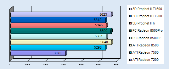 Die folgenden Diagramme sollen die Leistungen der Karten wiederspiegeln. Als Vergleichwerte wurden die bereits getesteten Hercules Titanium Karten verwendet. Zu jedem Benchmark-Programm wurden jeweils zwei Diagramme (für 1024 und für 1280) erstellt. Das erste der Beiden zeigt die Werte in 1024x768...