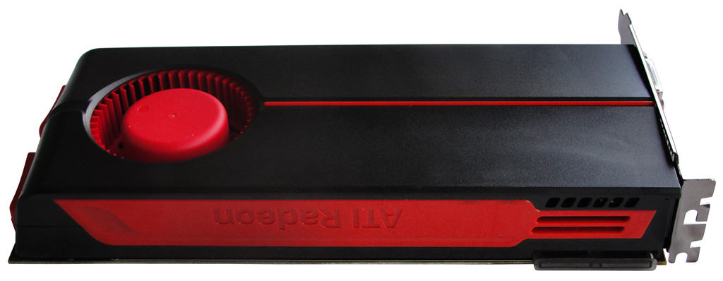 Die Profilansicht der edel-grafikkarten Radeon HD 5850 Premium Edition mit vollständig verschlossener Kühlkonstruktion.