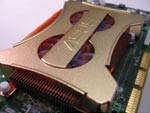 Beginnen wollen wir mit der neuen V9950 Serie von Hersteller Asus, der sich einen sehr schicken Kühler ausgedacht hat. Hohe Leistung bedingt oft hohe Temperaturen. Um diesen Effekt zu minimieren, entwickelte Asus eine völlig neue und kompakte Kühllösung, die nur einen PCI-Slot auf dem Mainboard belegt (Bildquelle: UK Gamer). Zwei langsam drehende Qualitätslüfter halten die Geräuschentwicklung bei etwa 30 dB. In Kombination mit einem speziell entwickelten Kupferkühler wird die V9950 Serie effektiv und vor allem leise gekühlt. Mit der V9950 Serie hat Asus gegenüber anderen Herstellern einen großen Vorteil, da der Kühler deutlich leiser ist und sich in Sachen Ausmaße auf den AGP-Port beschränkt. Wie uns Asus Deutschland versicherte, wird man in einigen Wochen auch noch eine Deluxe-Variante auf den Markt bringen...