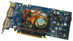 Die hier verbaute Kühlung erinnert auf den ersten Blick rein optisch sehr stark an den 7900 GT-Probanden von Nvidia, arbeitet jedoch bereits seit der ersten Platinen-Revision ohne einen Defekt der Lüftersteuerung, wenn auch nicht ganz zufriedenstellend. Nach erfolgreichem Boot-Vorgang wird der Lüfter des Kühlers bereits sehr stark gedrosselt und ist praktisch nicht wahrnehmbar. Im Windows angekommen und bei leichter Last ändert sich dies jedoch schnell und führt zu klar wahrnehmbaren Betriebsgeräuschen. Bei der Belastung durch 3D-Anwendungen dreht die Karte dann stark auf, was für uns wiederum bedeutet, dass hier deutlich zu wenig Regelstufen angesetzt wurden - teilweise volle Drehzahl ist angesichts der Temperaturen (siehe Seite 15) absolut unangemessen! Hier sollte man bei Point of View im BIOS noch etwas nach korrigieren.