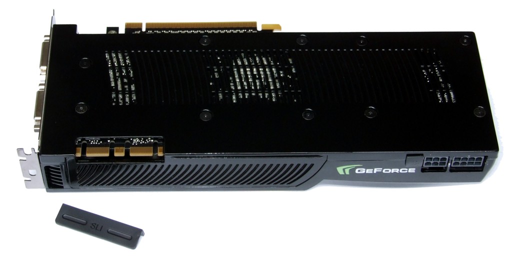 Die Stromanschlüsse und die rückseitige Blende der GTX 280 im Detail.