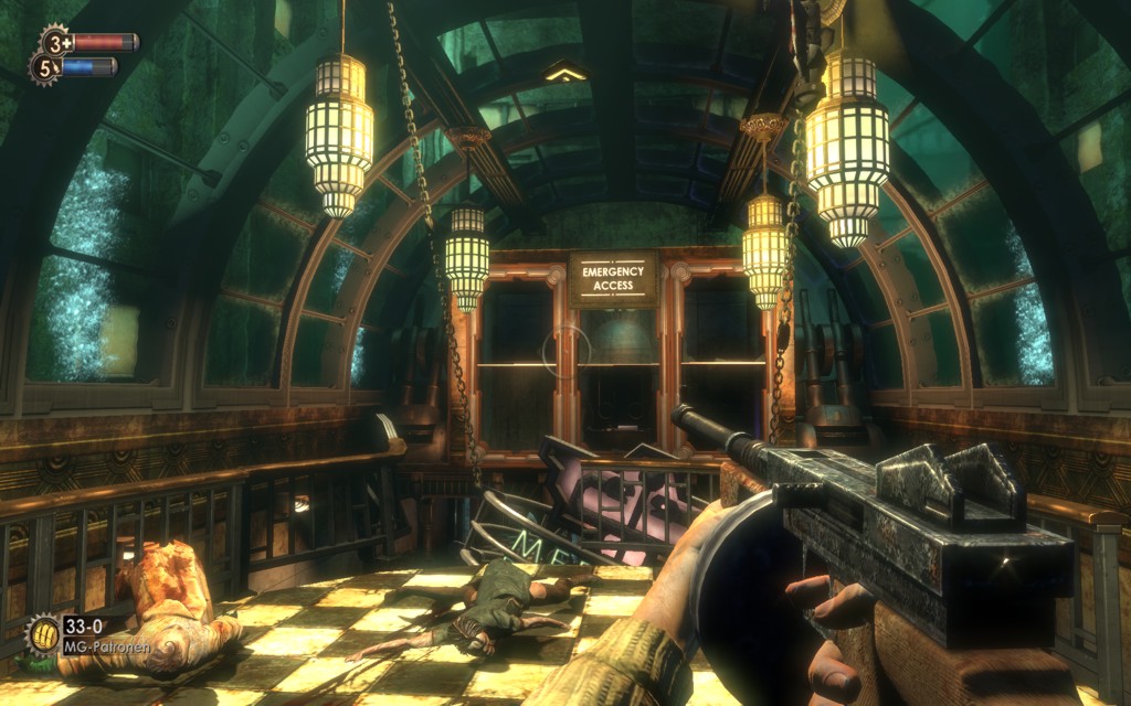 Ballern in höchst stilvoller Umgebung: Das Ambiente in Bioshock bietet üppiges Art Deco.