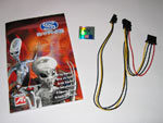 Das Kabelset setzt sich aus einem Chinch- und einem S-Video-Verlängerungskabel und einem Adapter für die Stromversorgung zusammen - zwei seperate 12 Volt Stecker für 5,25 Zoll Laufwerke verbünden sich zum 6-poligen PCI Express konformen Anschluss. Als Adapter legt Sapphire folgende Modelle bei: Chinch/S-Video, DVI/VGA. Um auch alle Neider auf den Besitz der Karte hinweisen zu können, hat Sapphire einen kleinen Case-Badge mit beigelegt. Folgend nun der komplette Lieferumfang kurz und bündig.