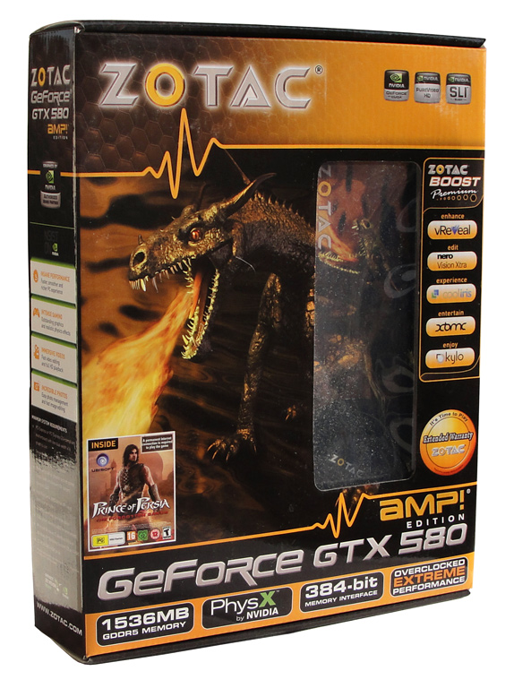 ZOTACs GeForce GTX 580 AMP! Edition legt seitens der Frequenzen die Messlatte noch etwas höher und geht mit einem Chiptakt von 815 MHz ins Rennen. Auch der Shadertakt wurde auf 1630 MHz angehoben, der Speichertakt beträgt 1025 MHz. Als Anschlüsse stellt die Karte zwei Dual-Link-DVI-Ports und einen Standard-HDMI bereit. Wie sich die AMP! Edition der GTX 580 in der Praxis schlägt, sehen Sie auf den folgenden Seiten.