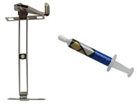 Was darf bei einem Kühlerroundup nicht fehlen? Richtig, Hersteller Thermaltake! Und schon beim Öffnen der Verpackung setzt sich das Unternehmen wieder richtig ins Szene und besticht durch ein reichhaltiges Zubehör, zumindest was den Bereich der Plattform-Kompatibilität betrifft. Der SonicTower ist nicht nur in der Lage Prozessoren der 7. und 8. Generation von AMD (Sockel 462(A)/754/939/940) zu kühlen, sondern auch Intels Sockel 478 und LGA775. Für insgesamt etwa 25 Euro Anschaffungspreis bekommt man zudem noch eine ausführliche Bedienungs- und Installationsanleitung und ein wenig Wärmeleitpaste. Zwei spezielle Halterungen ermöglichen des Weiteren den Einsatz eines optionalen 120 mm Lüfters für den aktiven Betrieb des SonicTower 4in1. Offizielle Informationen über die maximalen Frequenzen und Prozessormodelle die mit dem Thermaltake-Kühler betrieben werden können, liegen leider nicht vor - sämtliche Sockel A CPUs bedenkenlos tauglich. Die Montage des Passiv-CPU-Kühlers ist im Falle des AMD64-basierten Systems denkbar einfach und relativ fix erledigt: Eine in den Körper eingeschobene Klammer wird mittels zweier Schrauben an der bestehenden Backplate des Mainboards festgeschraubt und sichert den festen Halt. Die Verarbeitung des Boliden ist Tt-typisch gut und gibt keinen Grund zur Kritik.