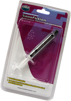 Ein ganz neues Produkt stammt von Cooler Master. Die NanoFusion Wärmeleitpaste soll neue Maßstäbe setzen und dank kleinster Nanoteilchen-Zusammensetzung die Wärme besser leiten können. Trotz relativ großer Tube sind allerdings lediglich 1,6 Gramm an dunkelgrauer Paste verfügbar. Für ein einfaches Auftragen hat Cooler Master zudem all seinen Pasten einen Kreditkarten großen Spachtel und vorgefertigte Abdeck-Klebefolien mit in den Lieferumfang gelegt. Nichts desto trotz konnte uns die NanoFusion von Cooler Master weniger bei der Anwendung überzeugen, da die Masse mit knetiger Konsistenz sich nur relativ schwer dünn verteilen lässt. Hier hatten wir besseres erwartet.