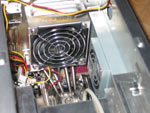 Ein großer Pluspunkt ist natürlich die mitgelieferte "Integrierte Cooling-Engine" (I.C.E.), welche große und Platzfressende Kühllösungen bestens ersetzt. Mit diesem von Shuttle patentierten CPU-Kühlsystem ist eine besonders geräuscharme Kühlung des Prozessors möglich. Hierbei wird die Prozessorwärme effektiv über eine Heatpipe zu feinen Kühl-Lamellen geführt, die sich im Luftstrom eines aktiv geregelten 8 cm großen Gehäuselüfters befinden. Entsprechende Einstellungen findet man auch im Bios der Platine. Auch für die 3,5 Zoll Festplatte hat man sich eine ganz besondere Halterung überlegt.