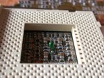 Bei genauerem Hinsehen erkennt man im Sockel wieder einen Temperaturmesser, der bei montiertem Prozessor unter der DIE liegen würde.