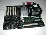 Für die Grafik-Enthusiasten sei gesagt, dass das Mainboard mit einem 8x AGP Port ausgerüstet ist, der auch für die kommenden Grafikkarten ausreichen wird. Aufgefallen ist uns dabei der besonders eigenartige "verbiegbare" Kartenhalter, bei dem wir es uns einfach nicht verkneifen konnten selbigen hier zu erwähnen...