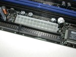Als nächstes wollen wir uns mit dem Layout des Mainboards beschäftigen. Hierbei gibt es beim D925XECV2 so gut wie nichts zu bemängelt, wäre da nicht der überdimensionierte Aluminiumkühlkörper auf der Northbridge, der dem PCI Express Slot der Grafikkarte sehr nahe kommt. Für eine normale Grafikkarte kein Problem, dürfte so manche Heatpipe-Kühllösung hier nicht passen. Ein Ersetzen des Kühlkörpers dürfte ebenfalls schwer werden, da dieser auf dem Mainboard vernieten und nicht verschraubt oder gesteckt ist. Hier muss man bei eventuellen Vorhaben schon etwas mehr Aufwand in Kauf nehmen.