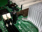 Scheinbar ist es in Mode gekommen zwischen AGP und den Speicherbänken möglichst wenig Spielraum zu lassen, so dass wie auch bei den letzteren AMD Platinen, hier ein Ausbau bzw. Einbau des Speichers zwangsläufig einen Ausbau der Grafikkarte zur Folge hat. Eigentlich unverständlich, denn nicht nur bei langen Karten á la GeForce 4 Ti4600 und neuer, sondern auch bei alten Karten, die bekannterweiße noch um einiges kürzer waren, zeigt sich dieses ärgerliche Hindernis...