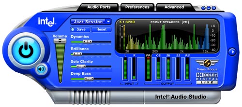 Jack sensing/retasking läßt eine Erkennung der angeschlossenen Audiogeräte zu und macht eine Umbelegung der Buchsen möglich. So macht das Setup der Surround-Boxen Spaß und man muß nicht unter dem Schreibtisch herumkriechen, weil wieder ein Klinkenstecker in der falschen Buchse ist. Welche Funktionen von HD Audio vom Motherboard unterstützt werden, hängt vom eingesetzten Codec (z.B. C-Media oder Realtek) und den rausgeführten Anschlüßen ab. Es wird Boards geben, die die volle Funktionalität von HD Audio bringen, aber auch auf besondere Marktbedürfnisse zugeschnittene Boards, etwa nur mit 5.1 Unterstützung ohne Jack sensing/retasking. Intel High Definition Audio ist ein offener Industrie-Standard, bei dem Intel als erster Lösungen auf den Markt bringt. Und mit 24 Bit bzw. 192 kHz und einem Rauschabstand von mehr als 90 dB, ist man auch im Bereich der Leistung vorne mit dabei!
