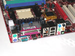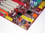 In Sachen Ausstattung und Features hat das MSI-Board durchaus einige interessante Merkmale zu bieten. So kann das VIA K8T800 Pro basierte Motherboard bis zu 4 GB DDR400-Speicher unterstützen - 4 DIMM-Sockel - und bietet dank Unterstützung des Athlon 64 und Athlon 64 FX auch Dual-Channel Support. Des Weiteren ist die Platine auch recht anschlussfreudig: 1x AGP 8x, 4x PCI, 1x PCI/COM (kann mit oben erwähntem MSI Dual-Net Set bestückt werden), 8x USB 2.0, FireWire (IEEE1394 via VIA VT6306), 3x IDE (ATA133) und 4x Serial-ATA (150). Dabei gehören ein PATA- und zwei SATA-Ports zum Promise 20579 RAID-Controller (0, 1). Ansonsten finden wir noch onBoard 8-Kanal-Sound (Realtek ALC850) und GigaBit Ethernet (Realtek 8110S) auf der Platine vor. Abgerundet wird das ganze durch den integrierten MSI CoreCell Chip, welcher gemeinsam mit der gleichnamigen Software Hardware-Monitoring und Feintuning des Systems ermöglicht - BuzzFree, PowerPro, Speedster, LifePro.