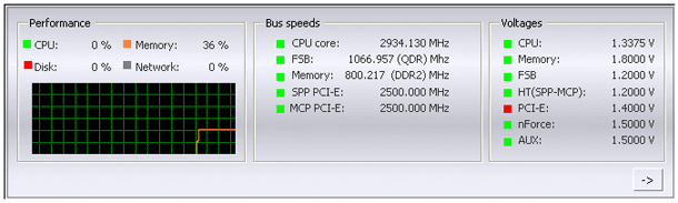 Auf der vorherigen Seite haben wir bereits angedeutet, dass sich das Nvidia-BIOS besonders auf die Bereiche Performance und Overclocking spezialisiert wurde und hier einiges an Features zu bieten hat. Laut Angaben von Nvidia konnte man bei eigenen Experimenten bis zu 2,1 GHz Front Side Bus erreichen und die verbauten EPP-Speicher stabil bei DDR2-1200 betreiben. Natürlich war dies Ansporn für uns die genannten Referenzwerte nachzubilden und Nvidias Behauptungen unter Beweis zu stellen. Ohne Probleme und Veränderungen jeglicher Spannungen war es möglich unseren Core 2 Extreme X6800 bei etwa 3,0 GHz und einem Bustakt von 1333 MHz zu betreiben (aktive Kühlung der Northbridge!).