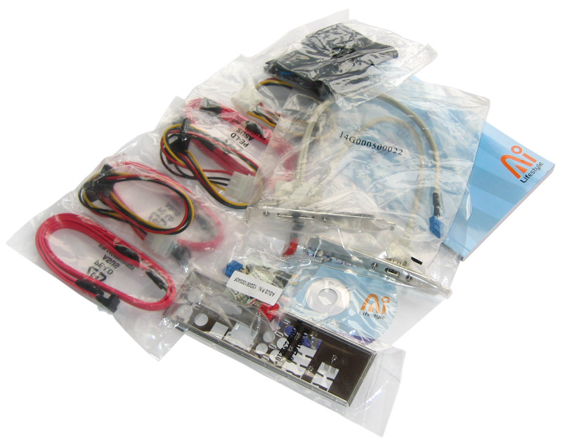 Der Lieferumfang des P5B-E Plus bietet wenig Spektakuläres und bringt auch verschiedene Asus-typische Zubehörbestandteile mit sich. So finden wir neben einem ausführlichen Handbuch und einer Treiber-CD (inkl. nützlicher Tools wie Asus Update, AI Suite, PC Probe II etc.) natürlich passende Anschlusskabel für Festplatten und optische Laufwerke. Dabei denkt man auch an Besitzer älterer Netzteile, die keine bzw. nur wenige SATA-Stromanschlüsse besitzen. Zwei Brackets sorgen für USB und FireWire auf der Rückseite des PCs und ermöglichen somit den Anschluss weiterer Peripherie. Typisch für Asus ist der mitgelieferte Q-Connector inklusive praktischer Schalter und LEDs, der das einfache Installieren und Entfernen der Front-Panel-Elemente erlaubt. Ein souveräner und kompletter Lieferumfang, wie man ihn von einem etwa 120 Euro teuren Mainboard erwarten darf.