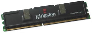 In unseren Produkttests musste auch Hersteller Kingston mit entsprechenden Modulen antreten. Dabei kam ein Dual-Channel Kit, bestehend aus zwei 512 MB DDR400 Registered ECC Riegeln, zum Einsatz. Mit Absicht haben wir mit dem Kingston-Kit ein 1 GB Set gewählt, da uns dieses unter anderem den Unterschied zwischen 512 MB (2x 256 MB) und 1 GB (2x 512 MB) Speicher verdeutlichen soll. Wie gewohnt verfügen auch diese Kingston-Module der HyperX-Serie über passive Kühlung bzw. einen Heatspreader.