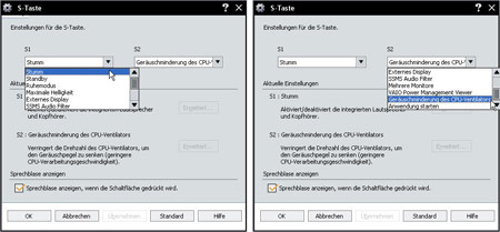 Erwartungsgemäß gut schlägt sich das Sony Notebook auch im Alltagsbetrieb. Ob in der Bahn, mobil am Arbeitsplatz oder einfach nur auf der Parkbank in der Sonne - das VGN-SZ1XP ist ein wahres Allroundtalent und aufgrund seines geringen Gewichts und der langen Akkulaufzeit (Stichwort Stamina) für längere Abenteuer fernab des Schreibtisches bestens gerüstet. Der Lüfter läuft zwar relativ schnell an, jedoch ist der Geräuschpegel akzeptabel. Sony hat neben der Einschalttaste zwei Sonderfunktionstasten eingebaut, die den Schnellzugriff auf verschiedenste Funktionen des Sony-Notebooks regeln, darunter zum Beispiel auch die Lüfterdrehzahl (siehe Bild). Durch das Umschalten zwischen normalem- und Staminamodus ergibt sich eine bis dato ungeahnte Flexibilität. Der Anwender kann nun selber entscheiden, wie er die vorhandene Akkukapazität individuell einsetzt.