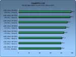 Der höhere FSB zeigt auch bei den FlasKMPEG Benchmarks (Angaben in Bildern pro Sekunde) seine Auswirkungen,