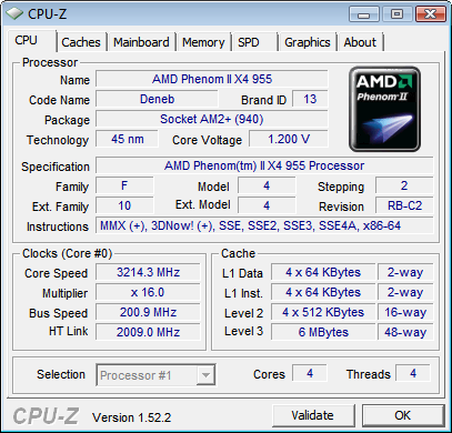 AMDs Phenom II X4 955 Black Edition macht einem das Overclocking relativ leicht, da der Multiplikator frei wählbar ist und die Kernfrequenz somit unabhängig vom Speichertakt erhöht werden kann. Bei einer Versorgungsspannung von 1,475 Volt, was einer Steigerung von etwa 22 Prozent entspricht, konnten wir den Takt auf 3,8 GHz anheben. Das Overclocking sorgte für eine Leistungsaufnahme von knapp 350 Watt (Gesamtsystem), was wiederum einem Plus von beinahe 36 Prozent entspricht. Der DDR3-Speicher wurde bei 1333 MHz (8-8-8-24) betrieben und mit herkömmlichen 1,65 Volt Spannung versorgt, die HyperTransport-Frequenz betrug 2,0 GHz.