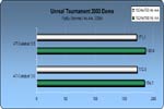 Bei Unreal Tournament 2003 (Angaben in Bildern pro Sekunde) ergab sich ein ähnlicher Verlauf wie vielen
