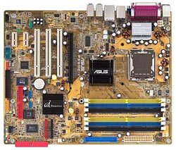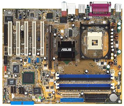 Wer kompromisslose Leistung und dabei keine Rücksicht auf Verluste bzw. den Preis nehmen will, für den kann es eigentlich nur eine Platine auf Intel Canterwood (i875P) geben: Asus P4C800-E Deluxe (Bild links). Die Sockel 478 Platine von Hersteller Asus verfügt neben zwei Ultra-DMA/100 und zwei Serial-ATA Anschlüssen auch noch über einen Promise RAID Chip, der noch einen zusätzlichen Ultra-DMA/133 Anschluß und zwei Serial-ATA Anschlüsse zur Verfügung stellt, so dass das Board RAID 0, 1, 0+1 und MultiRAID unterstützt. Außerdem bietet das Board einen 6-Kanal Audiochip, eine 10/100/1000 MBit LAN und Firewire Anschlüsse. Die Asus AI Features sorgen für einen völlig problemlosen Betrieb des Mainboards, da sich das BIOS selbstständig konfiguriert und eine AI Overclocking Funktion stellt alle relevanten Parameter automatisch im BIOS für die bestmögliche Performance und Stabilität ein. Preislich liegt das Asus Board bei etwa 150 Euro.