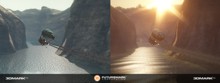 Die beiden ersten Graphics Tests geben die bereits bekannten Szenarien "Return to Proxycon" und "Firefly Forest" wieder. Hier verwendet man wie im Vorgänger durchgehend das Shader Model 2.0. Allerdings hat man die Details erhöht, die Texturen verfeinert und die Anzahl der Lichtquellen deutlich gesteigert. Dazu kommt, dass die default-Bildschirmauflösung stark erhöht wurde: Waren es im Vorgänger noch 1024x768 Bildpunkte, so werden der Grafikkarte diesmal 1280x1024 Bildpunkte abverlangt. Das fordert die Hardware natürlich enorm, denn in Verbindung mit den komplexen Lichtquellen ergibt sich eine wesentlich höhere zu bewältigende Rechenanforderung. Die nebenstehenden Bilder verdeutlichen dies.