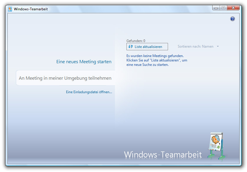 Für verbesserte Kommunikation mit der Außenwelt wurden die Punkte Windows Teamarbeit, Windows Mail und Windows Fax und Scan in das neue Betriebssystem eingepflegt. Windows Teamarbeit ermöglicht die Zusammenarbeit mit anderen Personen über das Internet. So kann man beispielsweise seinen Desktop freigeben oder Dokumente verteilen und gemeinsam bearbeiten. Teamarbeit verwendet Peer-zu-Peer-Technologie und richtet automatisch ein Ad-hoc-Netzwerk ein, wenn es feststellt, dass kein Netzwerk vorhanden ist. Man kann selbst an einer Besprechung teilnehmen, die eine andere Person eingerichtet hat, oder einfach eine neue Besprechung starten und andere Personen einladen, daran teilzunehmen. Windows Mail lässt sich sehr einfach beschreiben: Nachfolger des bekannten Outlook Express, jetzt auch mit Junk-Mail-Filtern und anderen Merkmalen des großen Bruders Outlook. Windows Fax und Scan kennen wir ebenfalls schon aus Windows XP, soll nach Angaben von Microsoft jedoch deutlich weiterentwickelt sein.