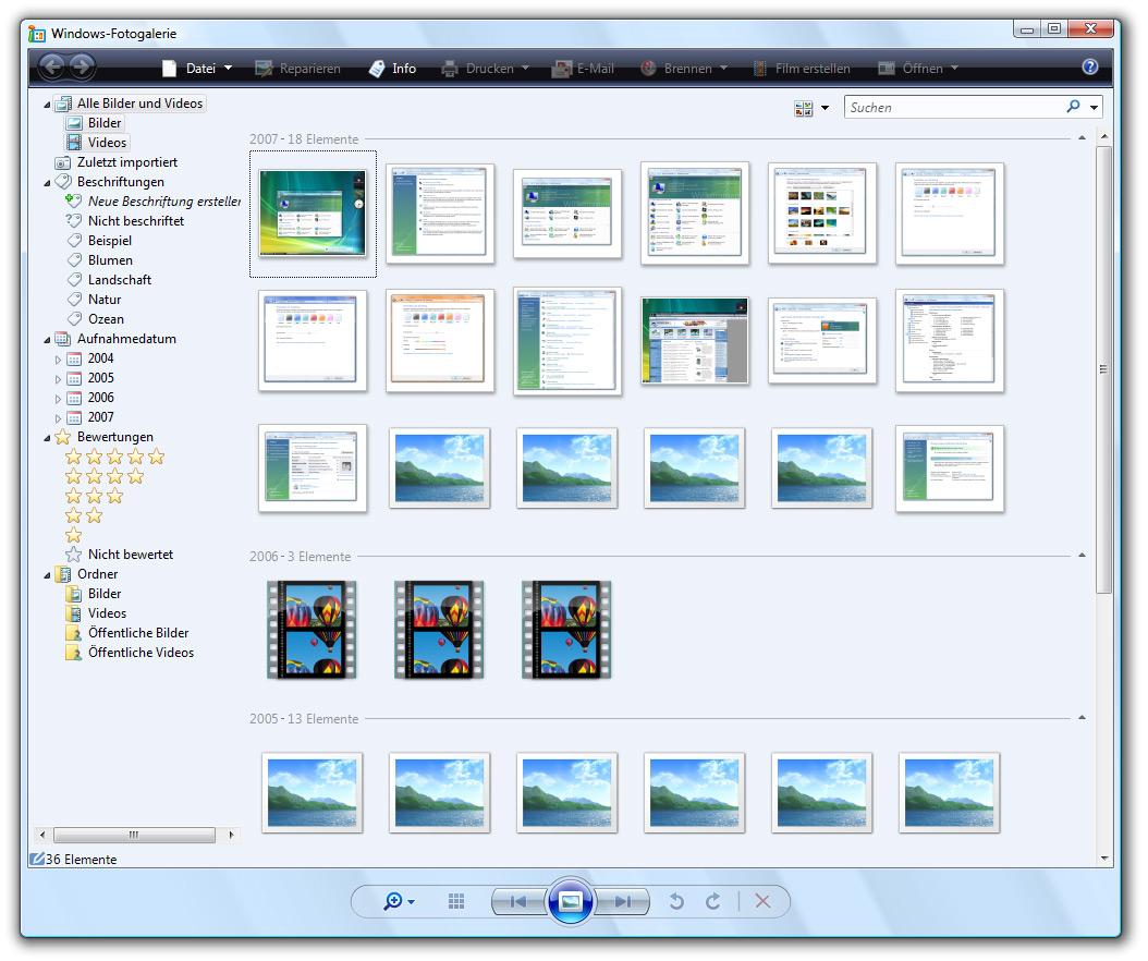 Weitere Neuerungen sind unter anderem die Windows Fotogalerie, Windows Media Center, die Windows BitLocker-Laufwerkverschlüsselung, Windows Sichern und Wiederherstellen. Mit der Fotogalerie lassen sich digitale Bilder anzeigen, verwalten, bearbeiten, freigeben und drucken. Bearbeiten umfasst hier auch Fotos zuzuschneiden, den Rote-Augen-Effekt entfernen und Farben und die Belichtung korrigieren. Media Center bedarf eigentlich keiner weiteren Erklärung, da dies einfach ein Abklatsch des gleichnamigen Betriebssystems ist: Man kann auf einen Blick Bilder, Video, Musik verwalten und auch Fernsehen. Die Windows BitLocker-Laufwerkverschlüsselung ist ein neues Sicherheitsfeature, das durch Verschlüsseln aller Daten, die auf dem Systemlaufwerk gespeichert werden, einen verbesserten Datenschutz für den Computer bietet. Standardmäßige Voraussetzung hierfür ist ein TPM. TPM (Trusted Platform Module) ist ein in den Computer integrierter Mikrochip. In diesem Chip werden Kryptografieinformationen, wie z.B. Verschlüsselungsschlüssel, gespeichert. Wenn BitLocker ohne TPM verwendet wird, werden die erforderlichen Verschlüsselungsschlüssel auf einem USB-Flashlaufwerk gespeichert, das zum Entsperren der auf einem Volume gespeicherten Daten vorhanden sein muss.