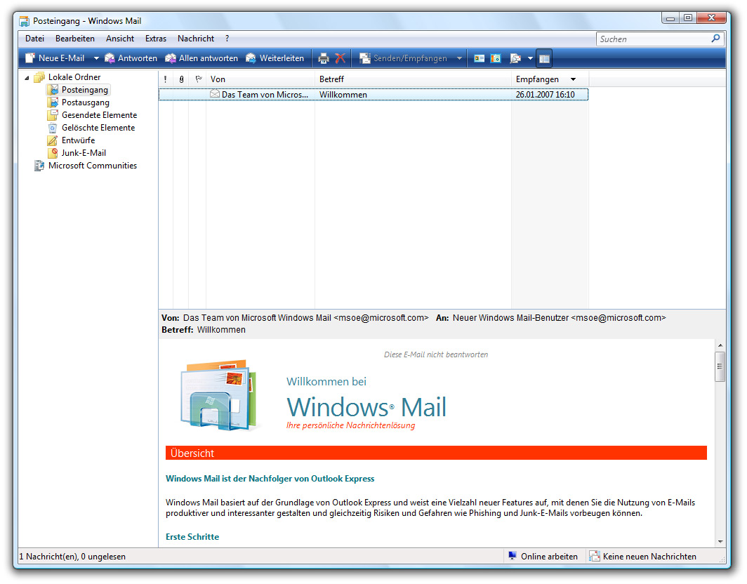 Windows Fotogalerie und Windows Mail erinnern stark an die