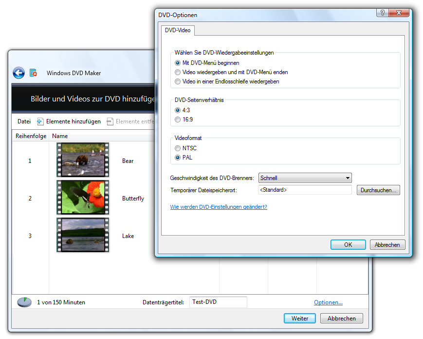 Ebenfalls neu dabei: Windows DVD Maker. Im Windows