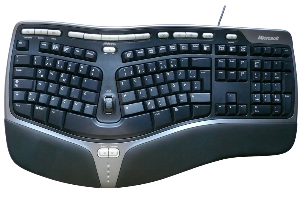 Zu guter Letzt kommen wir zum Microsoft Natural Ergonomic Keyboard 4000. Als einzige Tastatur mit zweigeteiltem Tastenfeld stellt sie etwas Besonderes in unserem heutigen Test dar. Sie wird von Microsofts eigenem Ergonomiespezialisten empfohlen, die Produktreihe ist zudem die meistverkaufte in der Ergonomiesparte. Sie ist die teuerste Tastatur unseres heutigen Tests mit einer unverbindlichen Preisempfehlung von 54,99 Euro.