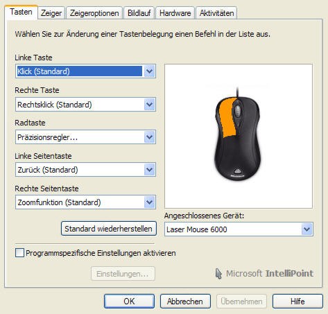 Die Unterschiede zur Wireless 6000 liegen allerdings nicht nur in ergonomischen oder optischen Gesichtspunkten, sondern auch die technischen Details weisen in diese Richtung. Verbaut wird allerdings der gleiche Sensor wie bei der Wireless 6000, der mit einer Abtastrate von 1000 dpi arbeitet. Das ist für eine Gaming-Maus nicht sensationell hoch, da die anderen Kandidaten des Tests zum Teil die doppelte Auflösung zu bieten haben. Dennoch genügt es für die meisten Spiele vollauf. Dort verhält sich die Maus unauffällig, bei Anwendungen ebenso. Präzises Arbeiten funktioniert gut, allerdings löst die Wireless die im Office-Bereich anfallenden Aufgaben etwas geschmeidiger. In Spielen würde man sich v.a. wünschen, dass sich die Teflonfüße etwas gleitfreudiger zeigen, denn die Copperhead z.B. schneidet hinsichtlich der Reibungsarmut deutlich besser ab. Das resultiert in einem etwas besseren Beschleunigungsverhalten. Hier sollte Microsoft für die zukünftigen Modelle über die Wahl eines besser gleitenden Materials nachdenken. Das Gewicht liegt mit 93 Gramm in einem Bereich, in dem sich auch die Copperhead oder die Pro v1.6 bewegen.