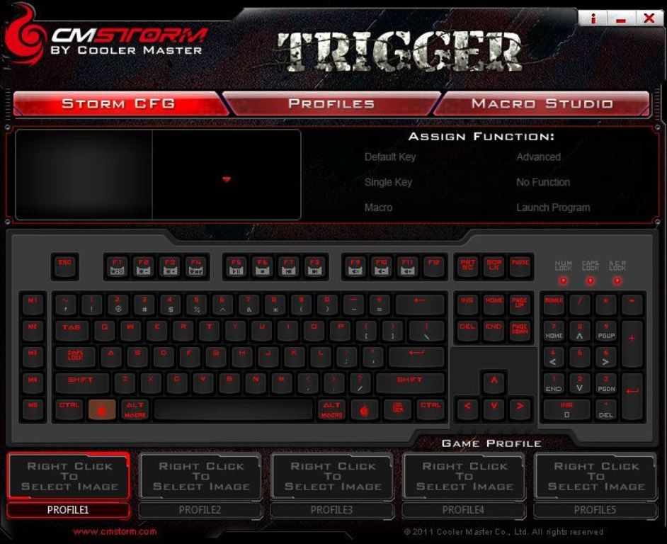 Die Software hat installiert stattliche 450 MB. Dies scheint ein neuer Rekord zu sein. Allerdings bietet sie eine Vielzahl an Möglichkeiten, die Tastatur anzupassen, damit sie den eigenen Bedürfnissen entspricht. Die Einstellungen werden auf dem Onboard-Speicher hinterlegt. Bei jedem Einstecken braucht die Software allerdings bis zu 30 Sekunden um die Tastatur freizugeben und eventuelle neue Makros zu erkennen. Die Software wirkt auf den ersten Blick übersichtlich, allerdings wird eine Tastatur mit englischem Layout gezeigt. Es können den einzelnen Tasten verschiedene Funktionen zugewiesen werden, Makros lassen sich ebenso wie verschiedene Profile definieren. Es bleiben keine Wünsche offen.