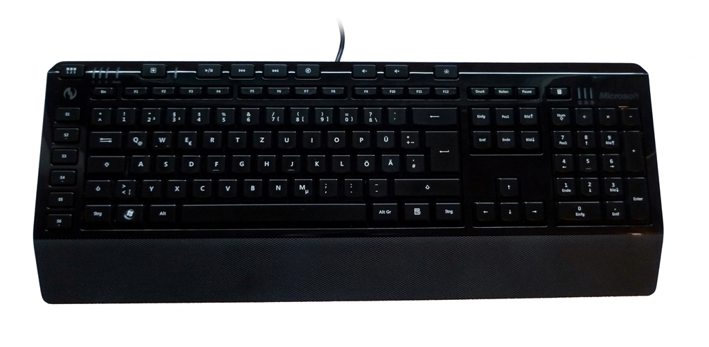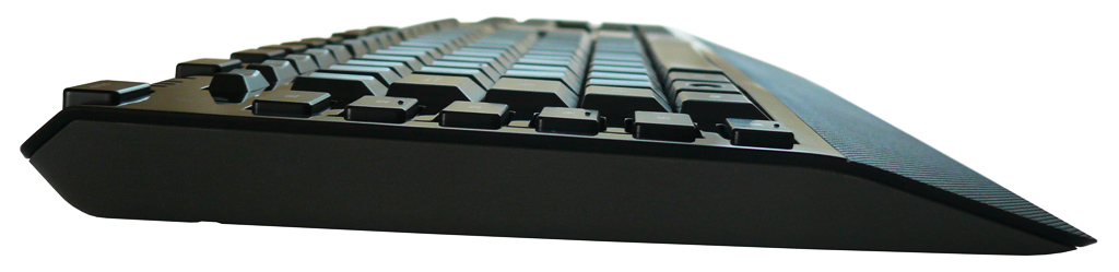 Ein wesentliches Feature der Tastatur ist die Anti-Ghosting-Technik. Sie ermöglicht das Drücken von vielen Tasten gleichzeitig. In unserem Test schafften wir es mit unseren 10 Fingern kaum Kombinationen zu finden, die nicht funktionierten. Der Anschlag der Tasten gleicht dem der SideWinder X6 und ist angenehm, aber nicht unbedingt geräuscharm. Da die Handballenauflage relativ kurz ist, berührten wir sie in unserem Test kaum. Hier wäre eine etwas höhere bzw. längere Handballenauflage angenehmer gewesen.