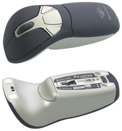 Ein echter technologischer Leckerbissen ist die mitgelieferte Gyration Go 2.4 Air Mouse. Was man sich unter dem Begriff Air Mouse vorstellen darf, klären wir (oberflächlich) mit den folgenden Zeilen: Die Maus ist mit der Gyration Gyro Technology ausgestattet und bedient sich bei seiner Funktionsweise des gyroskopischen Effekts. Dieser wird beispielsweise auch bei der Navigation in Flugzeugen genutzt, damit der Pilot auch bei schlechten Sichtverhältnissen feststellen kann wie die aktuelle Lage seiner Maschine ist - Stichwort künstlicher Horizont. Auch beim neuen Controller der Next-Gen-Konsole Nintendo Wii kommt ein Gyroskop zum Einsatz, welches die raumorientierte Steuerung von Spielen umsetzen wird. Der Gyration Go 2.4 Air Mouse dient der Effekt zum Steuern des Cursors und somit dem Betrieb ohne jegliche feste Unterlage - Air Mouse.
