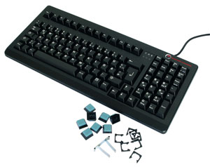 Eine weitere Zusatzfunktion die Raptor-Gaming dem K1 mit auf den Weg gegeben hat, ist das Sperren von Tasten. Manchen Gamern ist es mit Sicherheit schon aufgefallen, dass man häufiger als man es eigentlich will, die Windowstaste drückt, was zur Folge hat, dass man aus dem Spiel gelangt bzw. für kurze Zeit handlungsunfähig ist. Dieses kann nun nicht mehr vorkommen, wenn man einfach die Taste, die man zu häufig ungewollt betätig, sperrt. Hierzu nimmt man die ober- oder unterliegende Taste mittels des Knopfabziehers raus und steckt eine von ebenfalls acht mitgelieferten Klemmen unter die gewünschte Taste. Von nun an kann diese Taste erst wieder betätigt werden, wenn die Klemme entfernt worden ist.