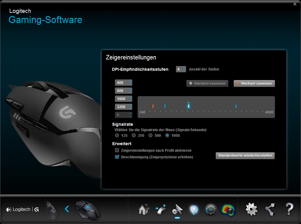 Die Tastenbelegung der Logitech G402 sind relativ frei anpassbar.