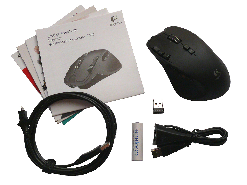 Logitech verwendet bei der G700 wieder einen Nano-Empfänger. Dieser ist allerdings kein Unifying-Empfänger, da dieser den hohen Datenraten nicht gewachsen wäre, die beim Betrieb der G700 anfallen. Durch die kleinen Abmessungen des Empfängers ist es auch möglich diesen beim Transport eines Notebooks im USB-Slot zu lassen. Um einen besseren Funkempfang zu gewährleisten kann das beigelegte USB-Kabel als Verlängerung verwendet werden.